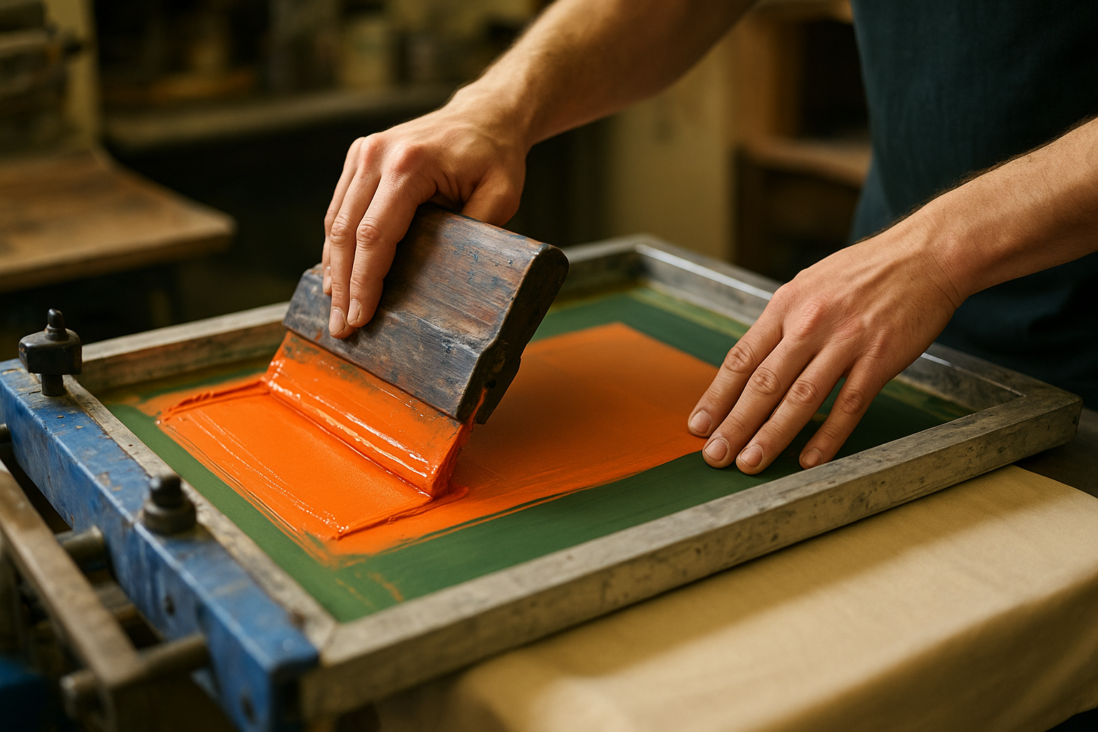 SERIGRAFÍALa serigrafía textil es una técnica tradicional de estampado que utiliza marcos con mallas y tintas especiales para transferir el diseño sobre la prenda.
